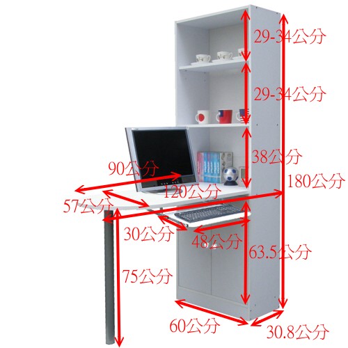 桌面120公分(寬)蛋頭形-雙門書櫃型-電腦桌/書桌(含鍵盤)【尺寸圖】